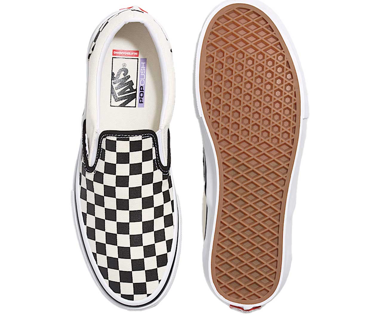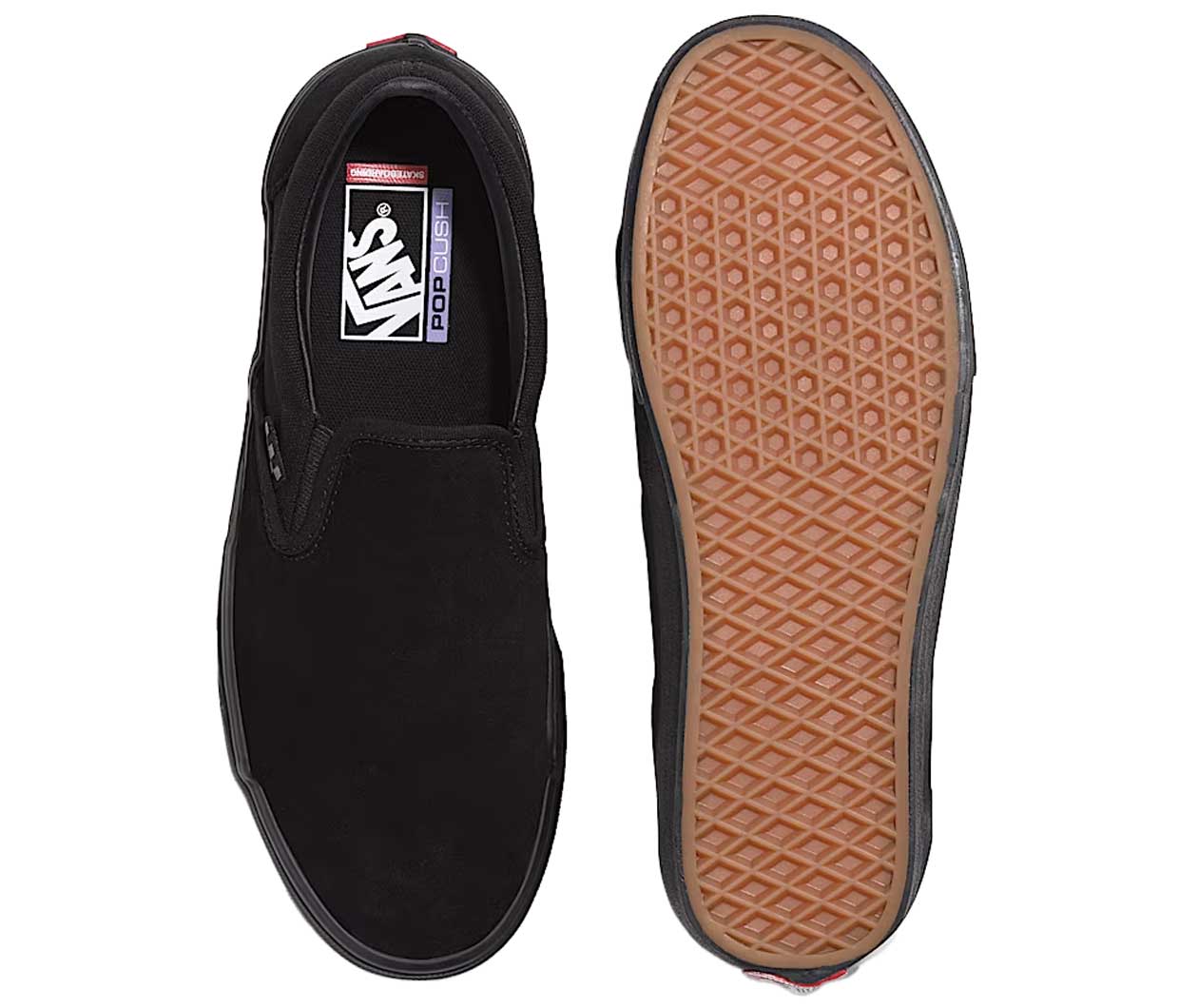 The Vans Skate Slip-On in Black/White updates the iconic silhouette with modern performance features built for skateboarding. Constructed with a durable suede upper, it’s part of the Skate Classics collection—engineered to deliver more of what skaters need for progression. A padded collar and molded heel counter enhance comfort, support, and stability, while PopCush™ footbeds provide superior impact protection and reduce leg fatigue for longer sessions. Reinforced with DuraCap™ underlays in high-wear areas, the design withstands griptape abrasion and heavy use. Higher sidewalls increase durability, and the signature waffle outsole ensures reliable grip since 1966. Finished with a vulcanized sole, the Skate Slip-On offers superior board feel and flexibility, making it a skate staple built to last.