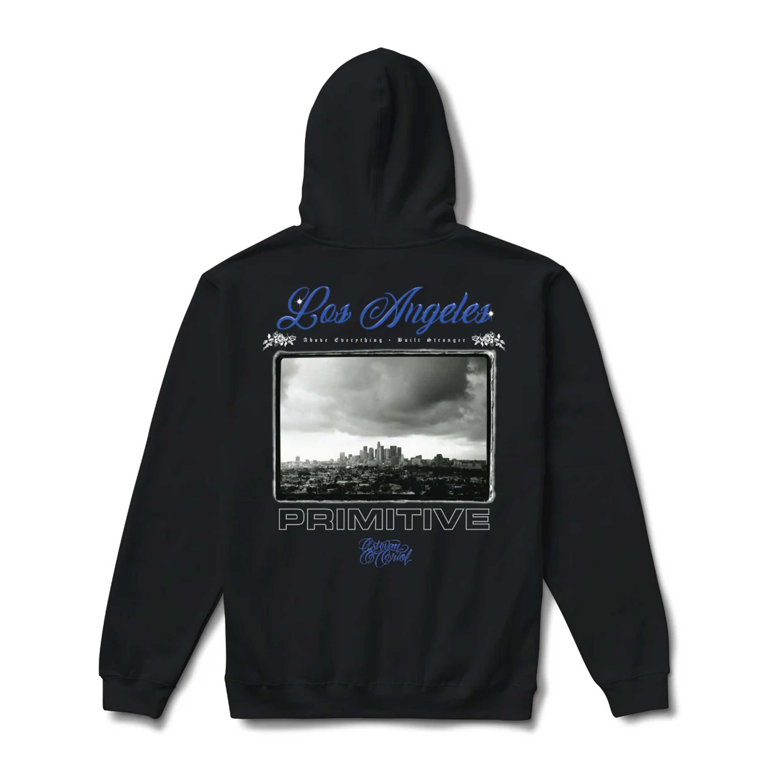 The Primitive x Estevan Oriol City Of Angels Hooded Sweatshirt in Black is crafted from 100% premium cotton with a heavyweight 400gsm build, offering a durable, elevated feel that holds its shape. Designed in collaboration with legendary Los Angeles photographer Estevan Oriol, this hoodie blends streetwear style with authentic West Coast culture.